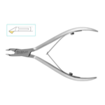 Profesjonalne cążki do wycinania skórek. Służą do precyzyjnego wycinania skórek w trakcie zabiegów manicure i pedicure. Wykonane są z wysokiej klasy nierdzewnej stali. Nadają się do dezynfekcji i sterylizacji w autoklawie.