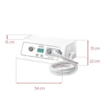 Ważną zaletą głowicy frezarki jest jej moc 50W, która pozwala na pracę do 30.000 obrotów na minutę. Turbina ssąca posiada aż 300W mocy i pozwala na efektywne wchłanianie wszelkiego pyłu i materiału resztkowego. Dzięki temu zabieg jest jak najbardziej higieniczny i bezpieczny, zarówno dla ciebie, jak i klienta.